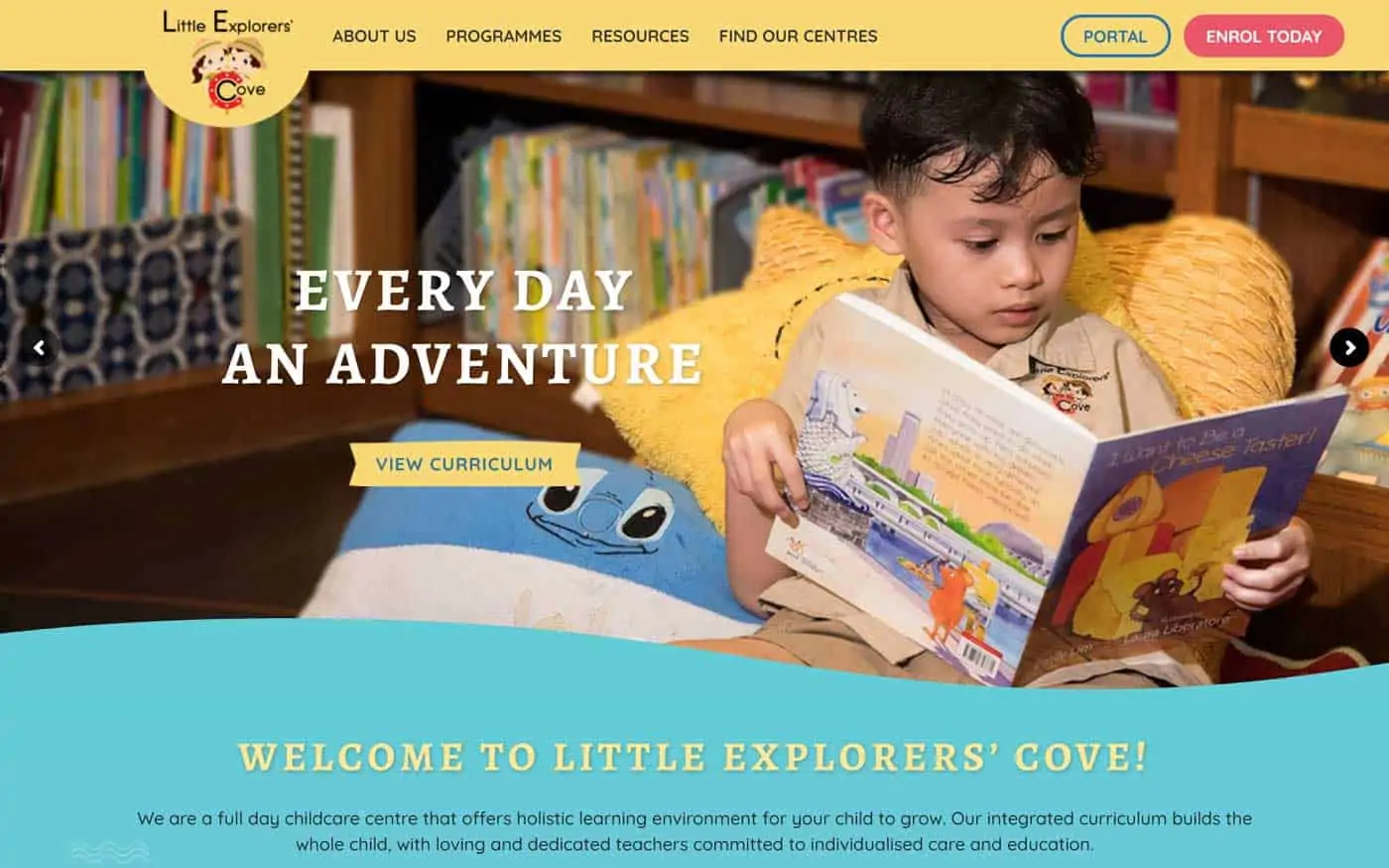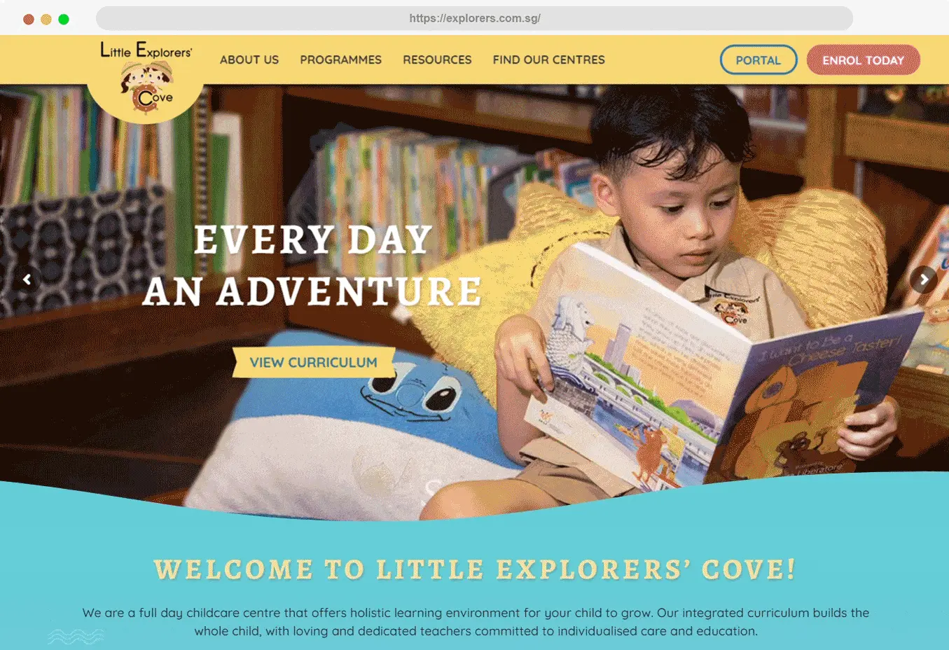 A full day childcare centre that offers a holistic learning environment for children to grow, Little Explorers Cove encourages learning through exploration and discovery. They approached Oangle to help with building an online presence, increasing awareness of their brand and generating leads online. The challenge in this website design lies in keeping the site professional and reliable, while highlighting the vibrant and exciting culture of the centre.